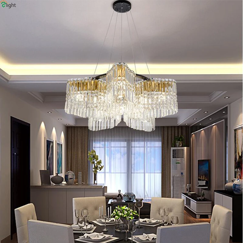 Modern Lustre Crystal Led Pendant Lights Living Room Black Metal