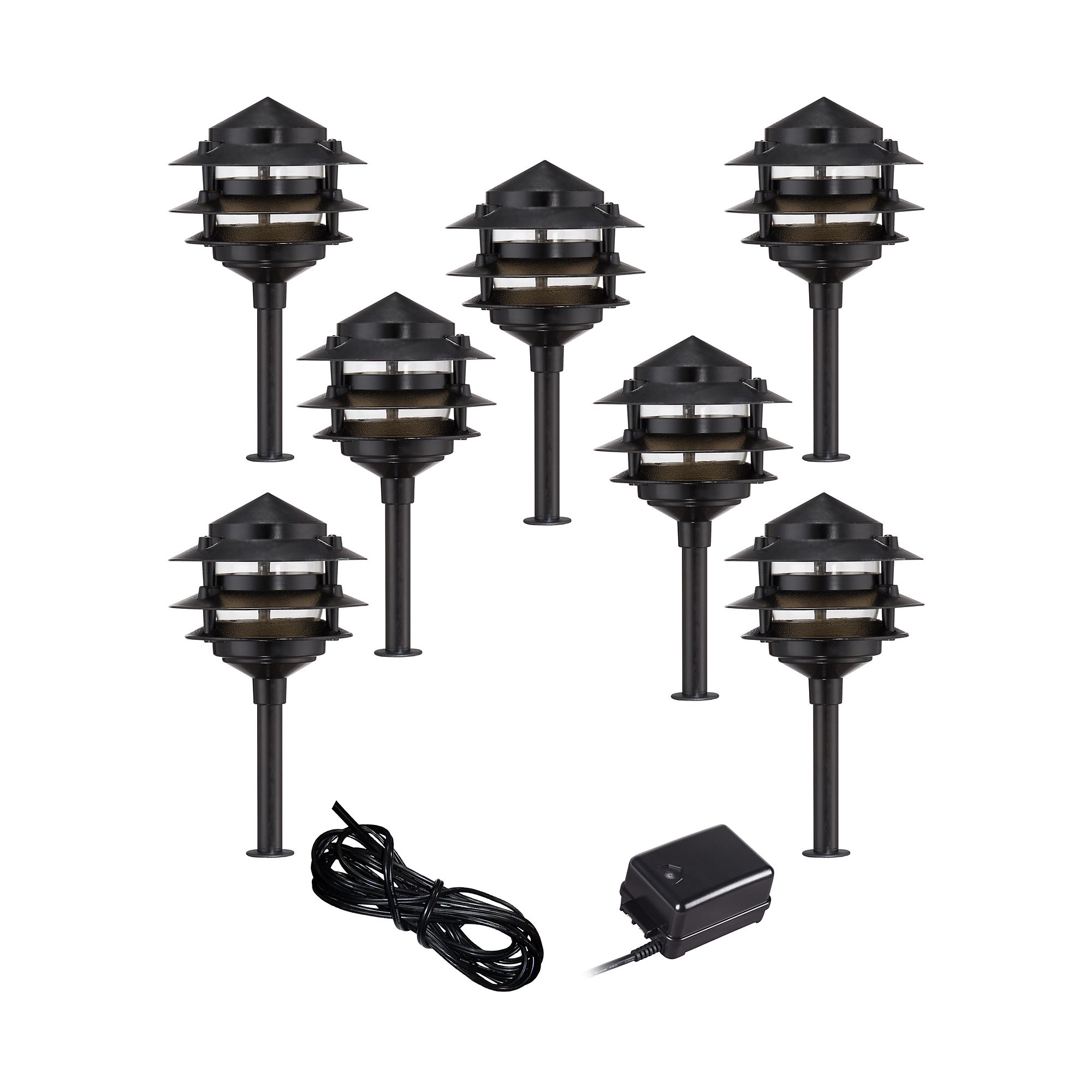 Pagoda Black 9 Piece Outdoor Led Landscape Lighting Set 64n75