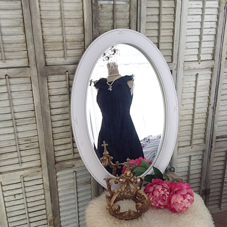White Oval Mirror Vanity Mirror Bathroom Mirror Shabby Chic Etsy