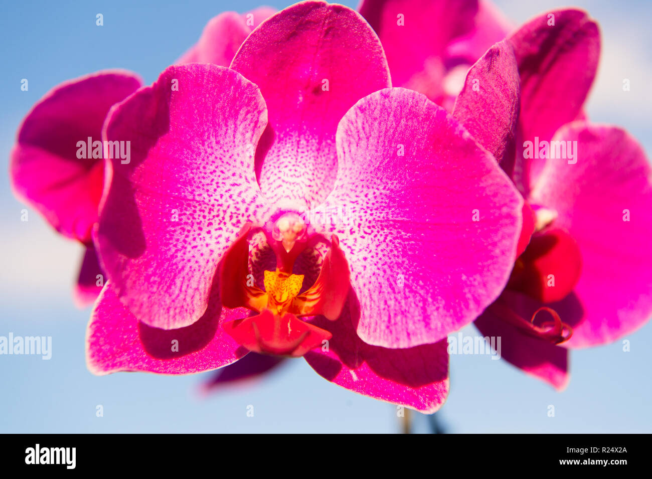 Orchid Flower On Blue Sky Background Close Up Tropical Flower