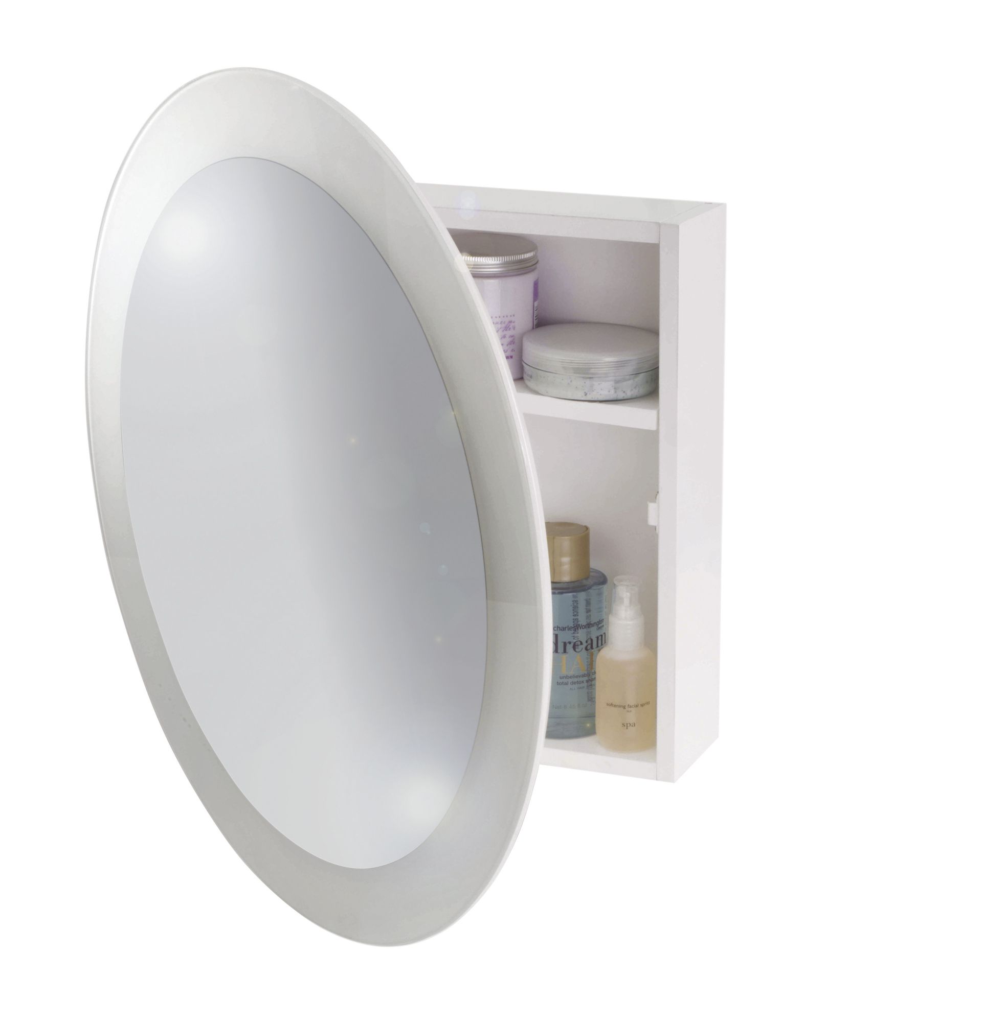 B Q White Ultra Slimline Mirrored Door Round Bathroom Cabinet W