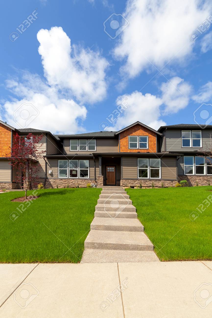 Concrete Stair Steps To New Townhome Door Entrance Front Yard