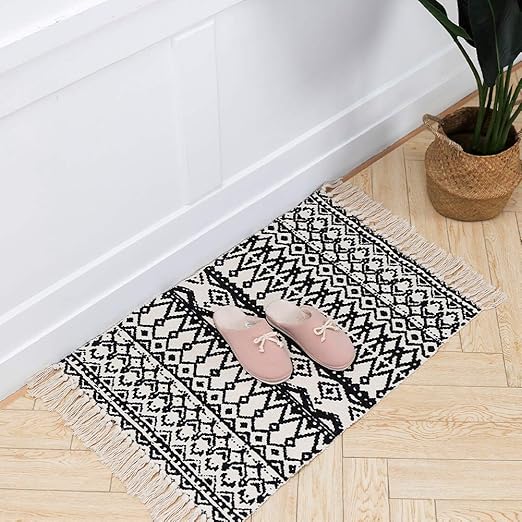 Amazon Com Cotton Woven Boho Rug Tassels Black White Bathroom