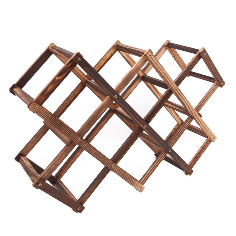 Foldable Wooden Wine Bottle Rack Red Wine Shelves Carbonized Color