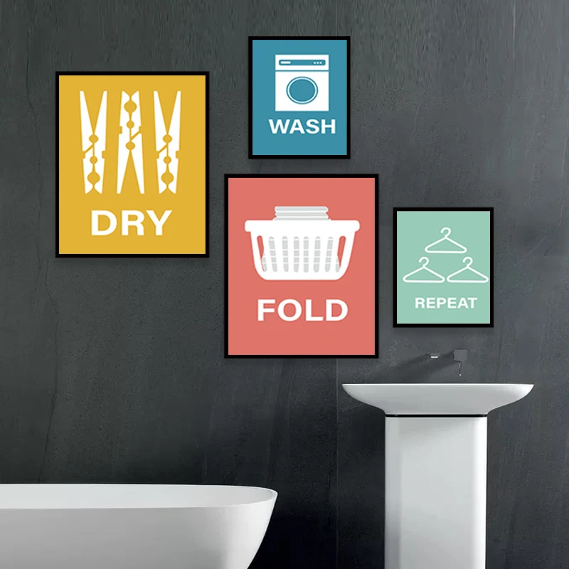 Modern Laundry Room Poster And Prints Wash Fold Repeat Dry Quote