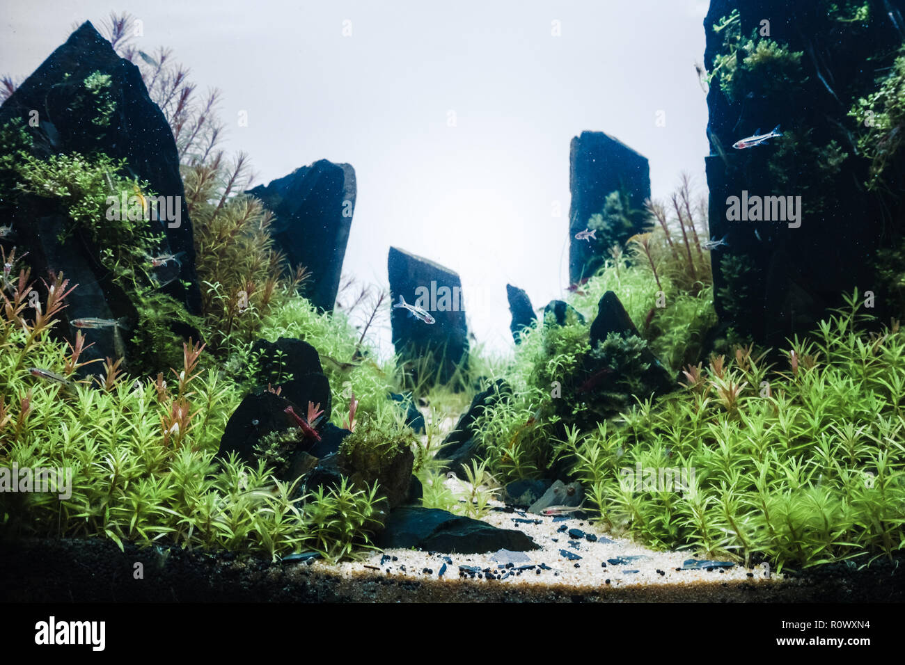 A Green Beautiful Planted Tropical Fish Tank Stock Photo Picture
