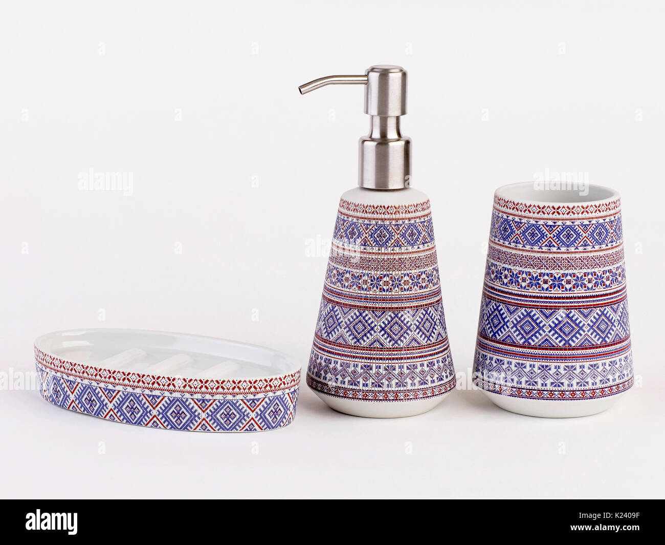 Beautiful Ceramic Bathroom Accessories Isolated On White