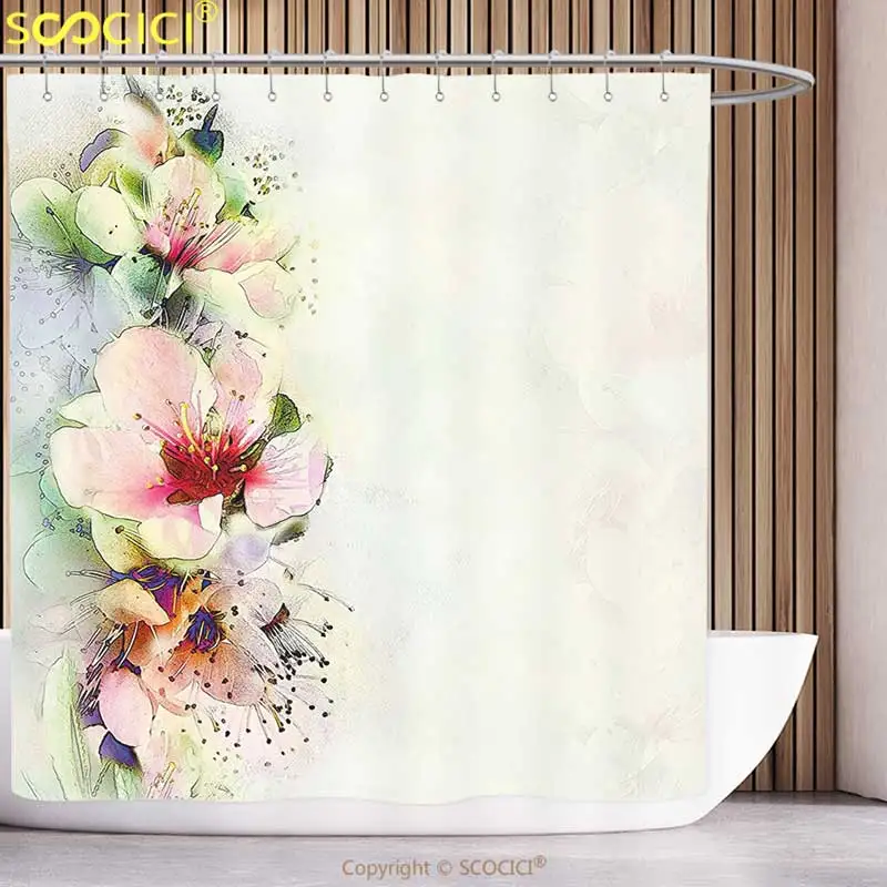 Funky Shower Curtain Shabby Chic Spring Season Floral Flower