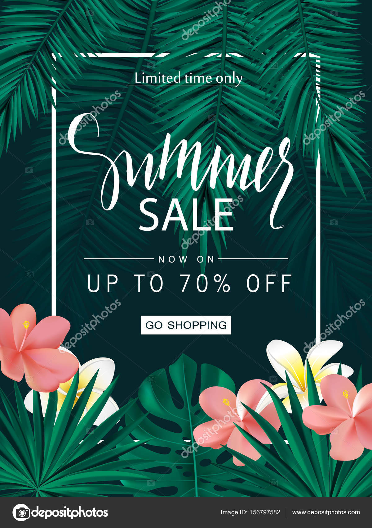 Summer Sale Trendy Tropical Leaves And Flowers Design Background