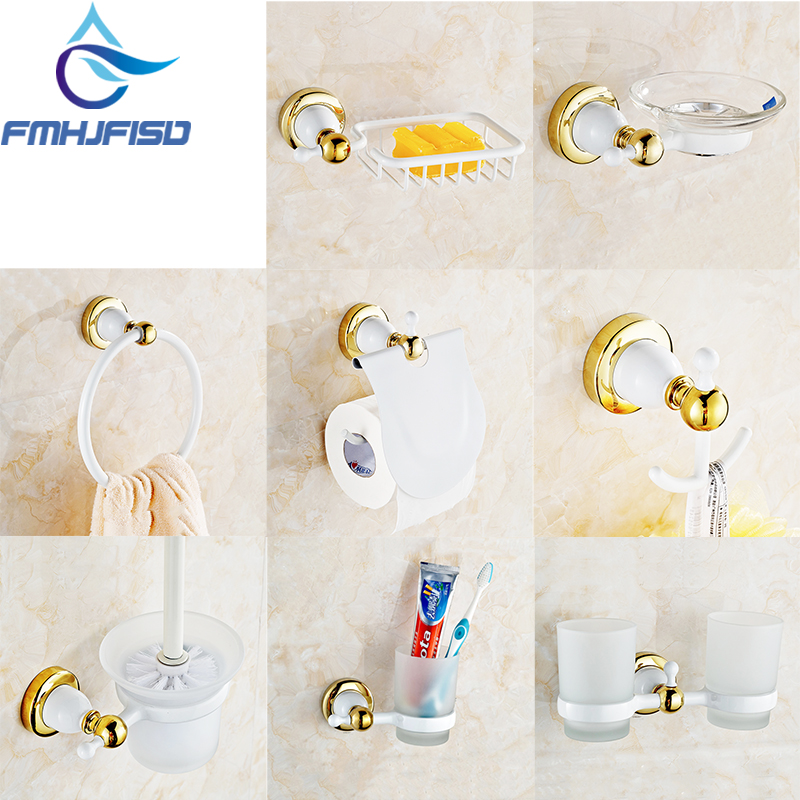 2020 Golden White Bathroom Hardware Set White Gold Paper