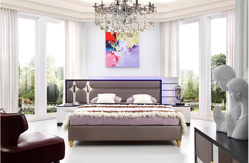 2017 New Design Exotic Bedroom Furniture Maharaja Bed Set With Led