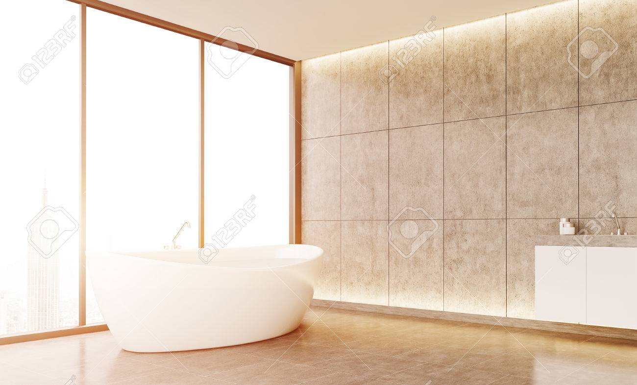 Comfortable Bathroom Interior With Large White Bath Tub And Sink