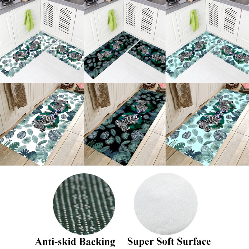 Zebra Green Leaves Pattern Runner Rug Area Rugs For Kitchen
