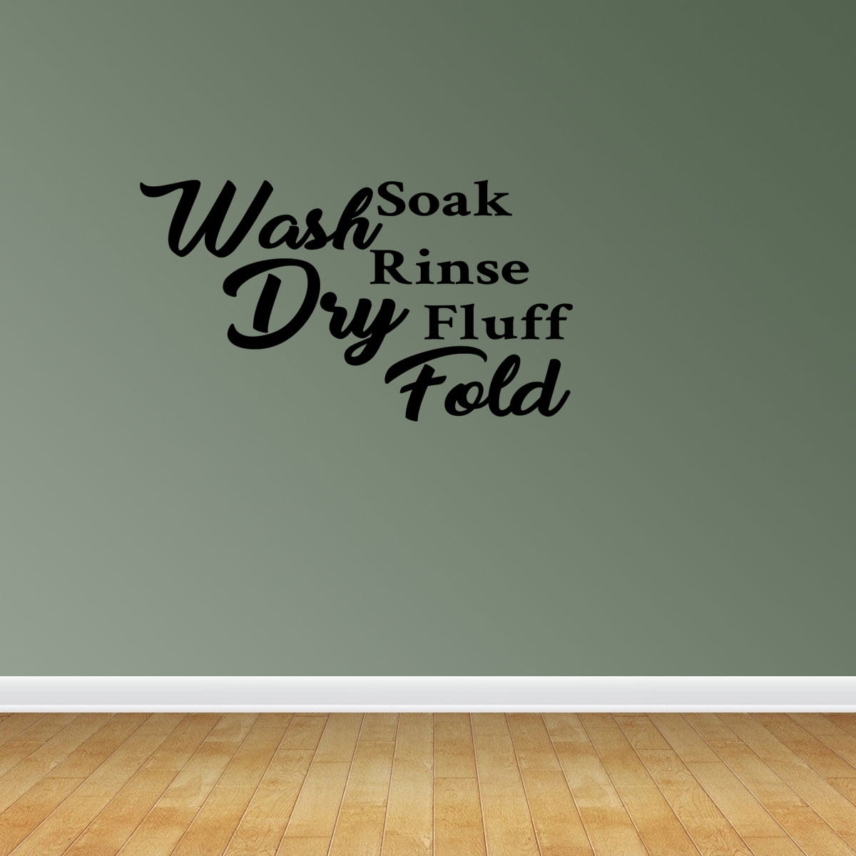 Soak Wash Rinse Dry Fluff Fold Vinyl Wall Laundry Room Decor