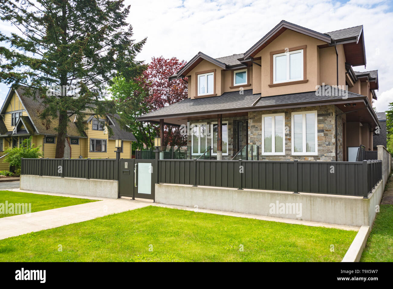 Big Family House With Concrete Pathway And Solid Metal Fence In