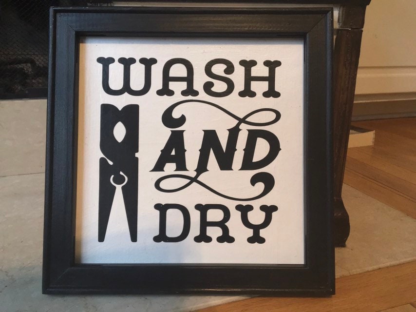 Laundry Room Sign Wash And Dry Vintage Style Wood Framed Canvas