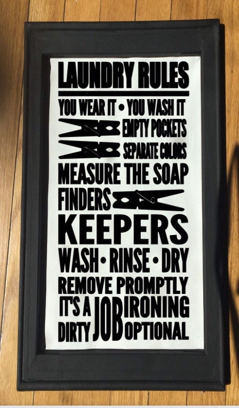 Laundry Room Sign Laundry Rules Wash Rinse Dry Iron Word Collage