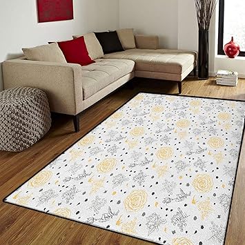 Grey And Yellow Bath Mat Non Slip Grunge Sketchy Romantic Roses