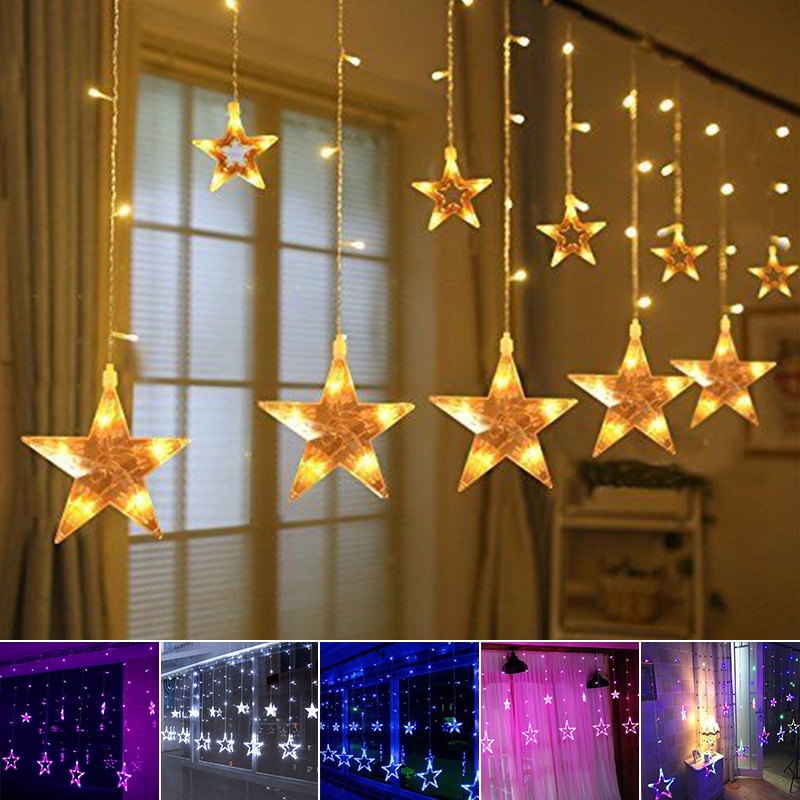 Star Shaped Led Lights String Curtain Window Bedroom Decoration
