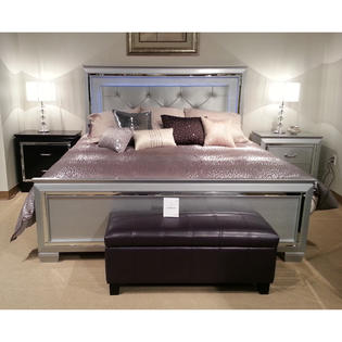 Hm Allura Modern Silver Wood Queen Bed Led Lighting Vinyl Board