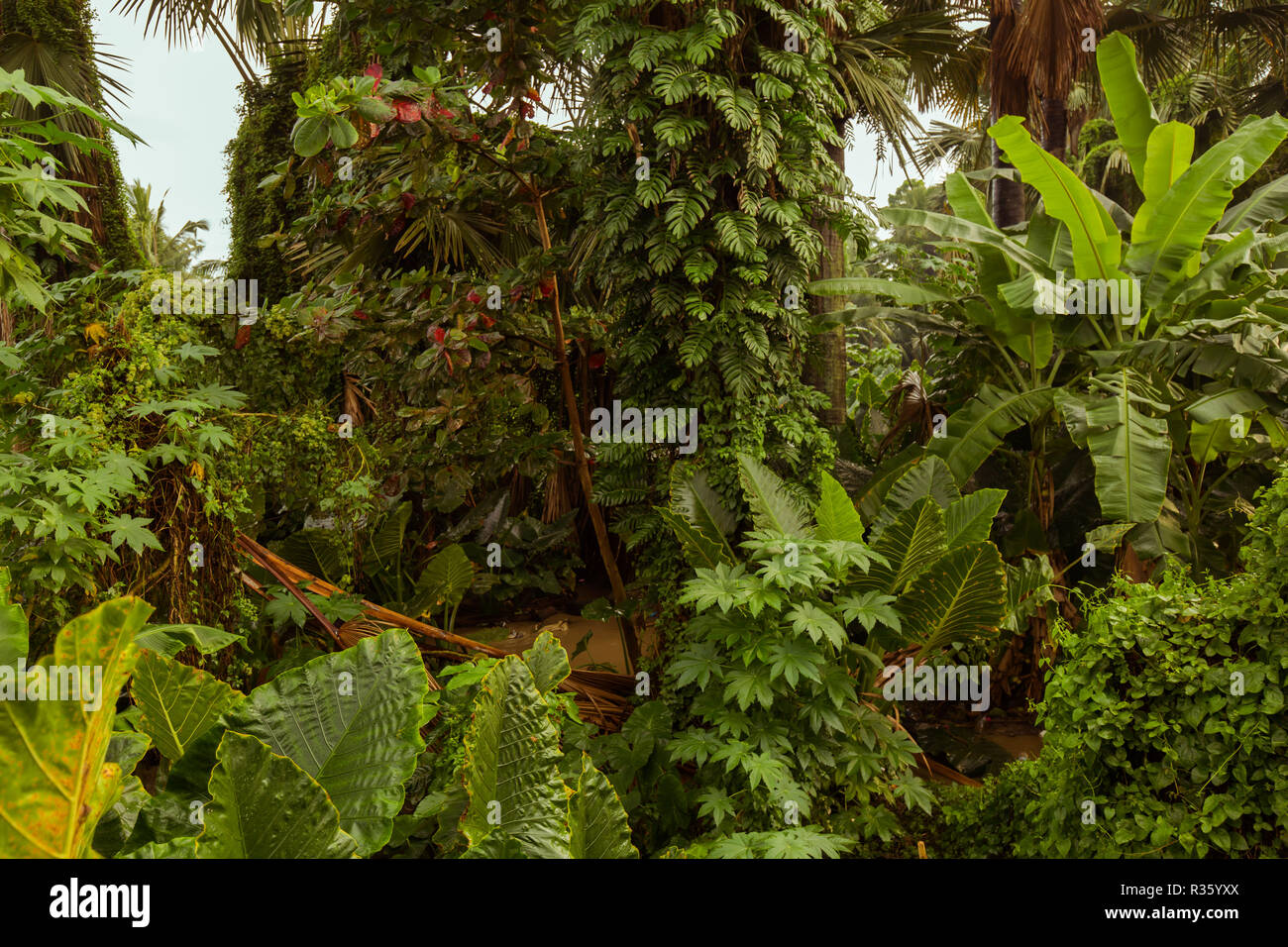 Tropical Rain Forest With Palm Trees And Big Climber Leaves And