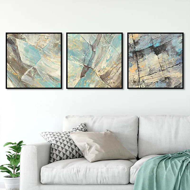 Hot Sale Nordic Style Rock Texture Blue Yellow Realism Art Canvas