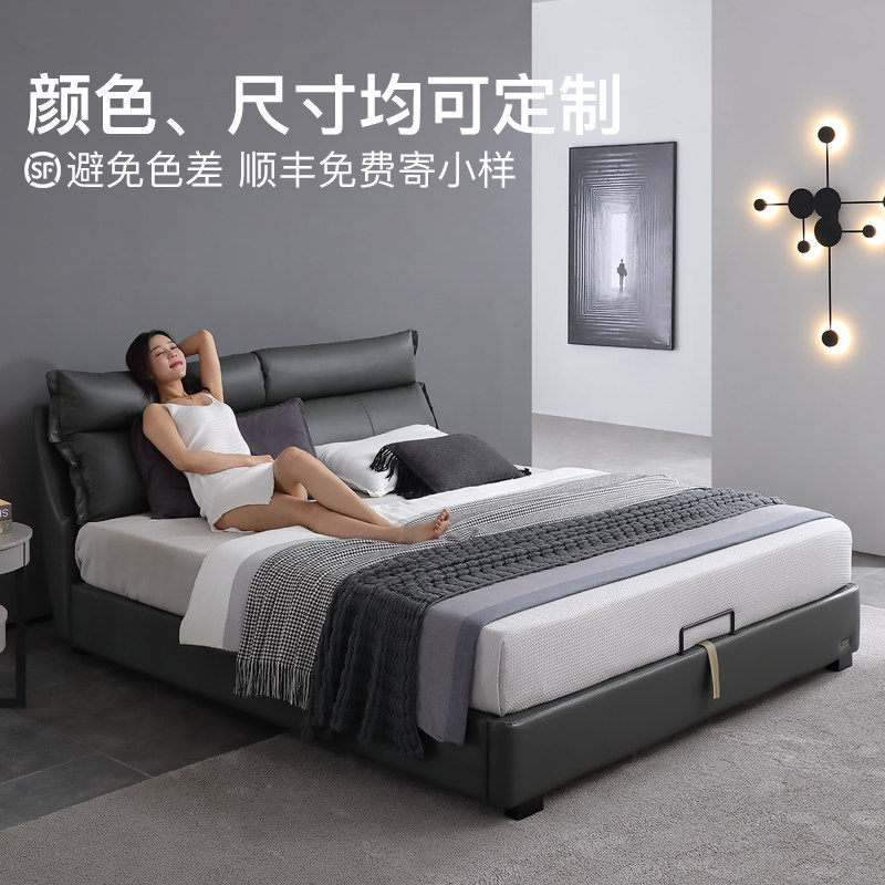 Modern Minimalist High Box Storage Leather Bed Leather Bed Small