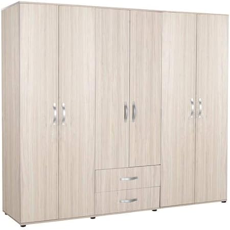 Adore Furniture Extra Large 6 Door Wardrobe With 2 Drawers Light