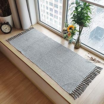 Amazon Com Ustide Hand Woven Rug Braided Rug Gray White Cotton