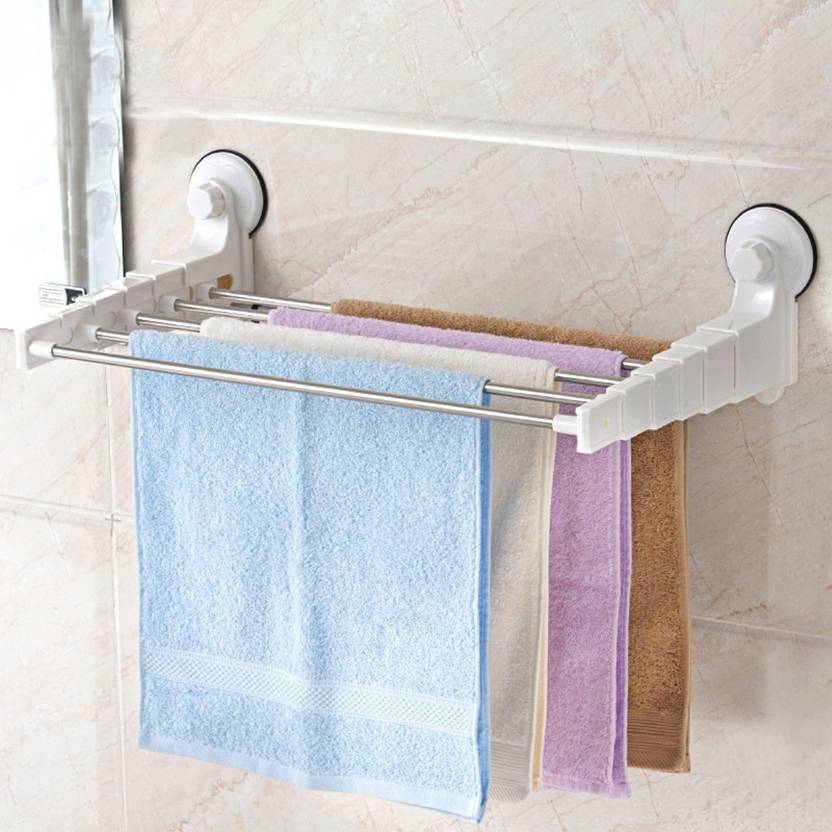 Urbancart Suction Cup Foldable Towel Bar With Hooks Bathroom Rack