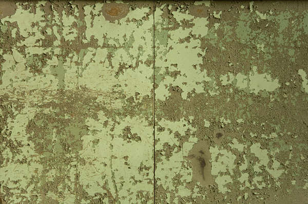 Some of the shiny green paint was peeled off exposing the base wall material.