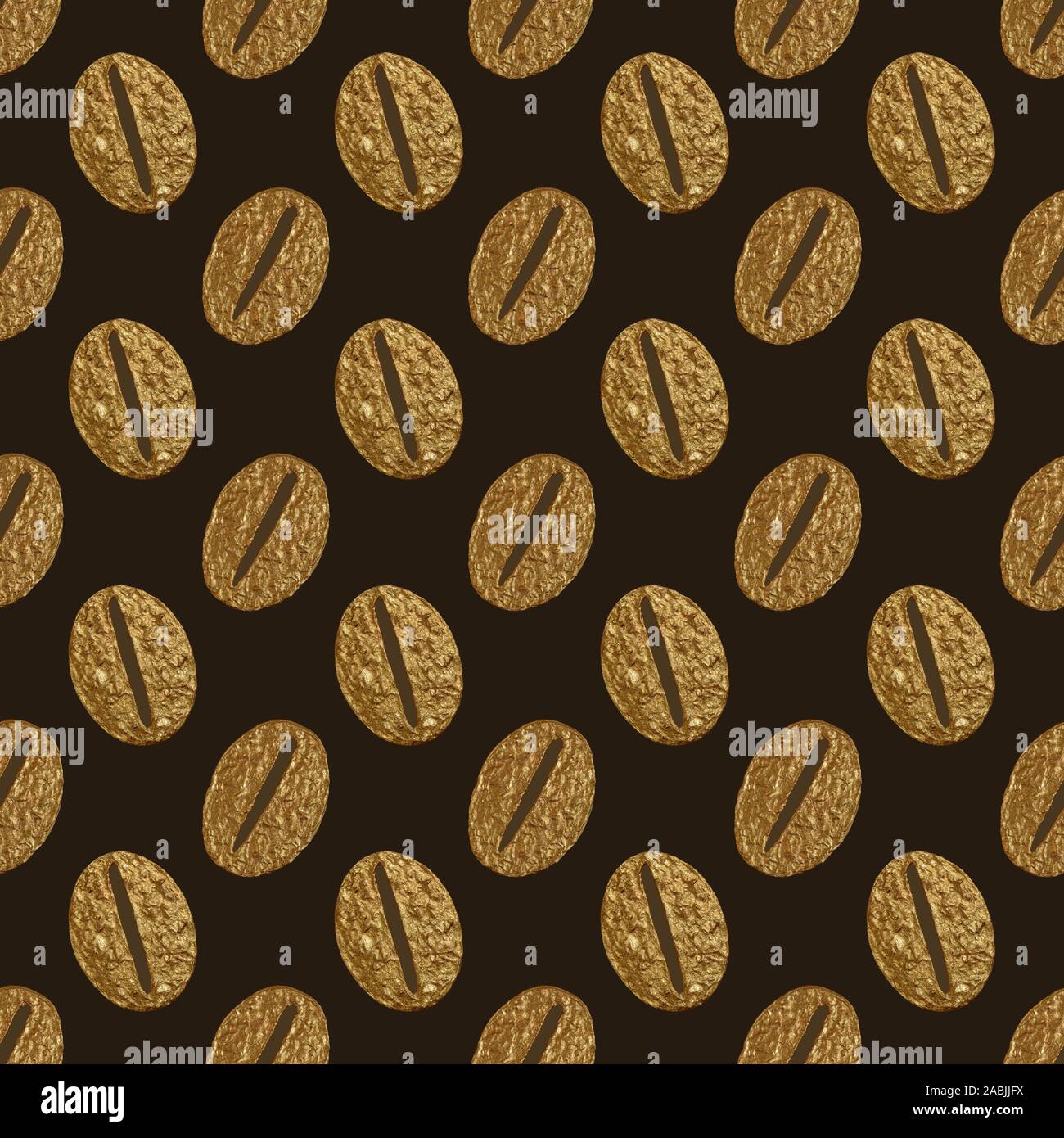 Coffee Beans Gold Seamless Pattern Abstract Hand Painted Golden