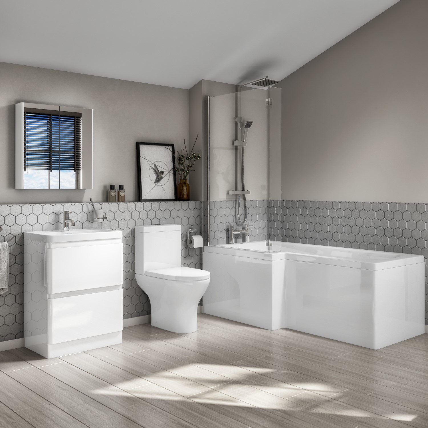 Bliss White Vanity Unit Left Handed L Shaped Shower Bath Suite