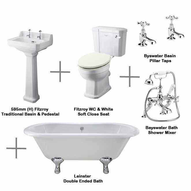 Complete white bathroom suite including mixers traps 1700mm x 700mm white acrylic bath 1700mm white front panel toilet and basin set basin and bath mixer taps waste and traps burnley plumbing supplies 27a old hall street burnley bb10 1 white bathroom suite with taps shower shower screen towel. They cover a wide range of modern and traditional styles from manufacturers such as ideal standard and ceramica. We have carefully selected pieces which work perfectly together giving you everything you desire to complete your bathroom with quality and style.