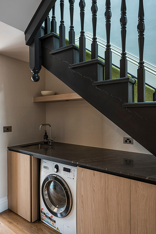 Laundry Hidden Under Stairs Traditional Laundry Room