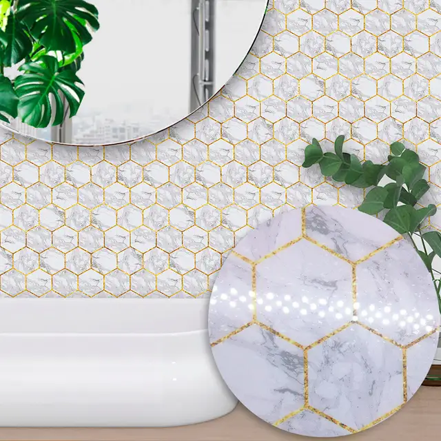 Funlife White Gold Marble Tiles Decal Modern Self Adhesive Kitchen