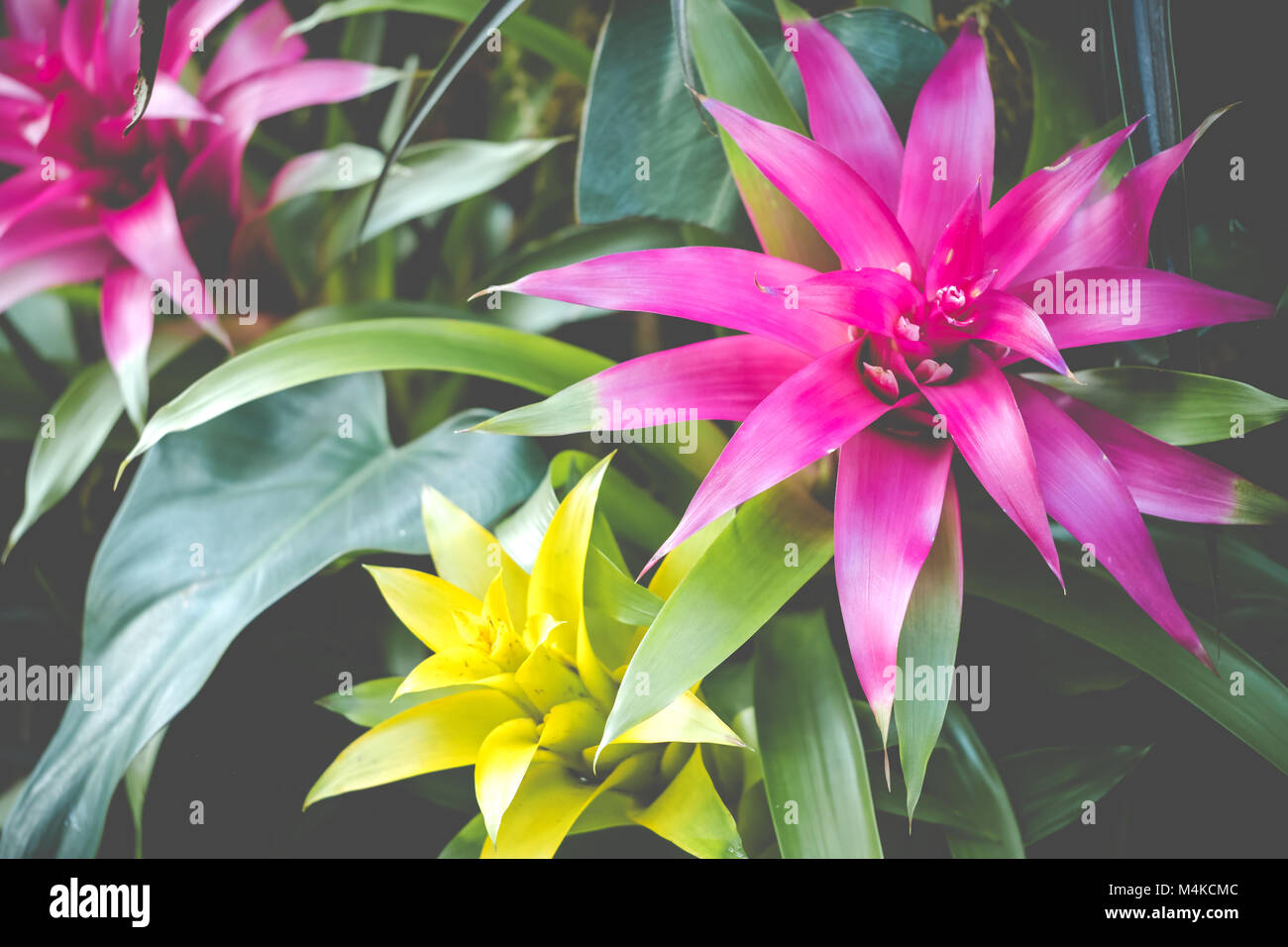 Yellow And Pink Tropical Flowers In The Hot House At Kew Gardens