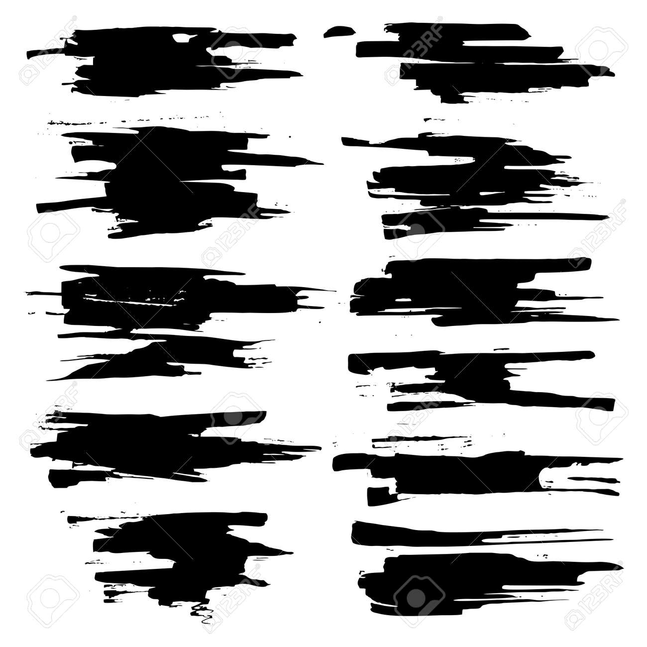 Collection Of Smears With Black Paint Strokes Brush Strokes
