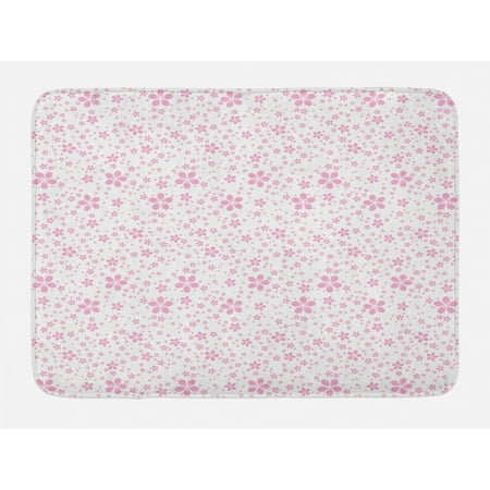 Cherry Blossom Bath Mat Childish Cute Pink Flowers On White
