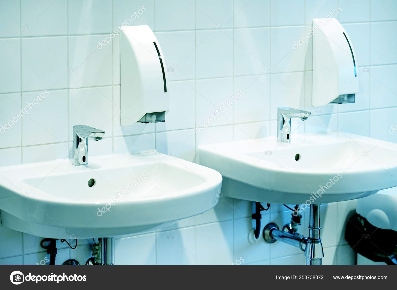 Modern White Bathroom Sink With Faucet Stock Photo C Svershinsky