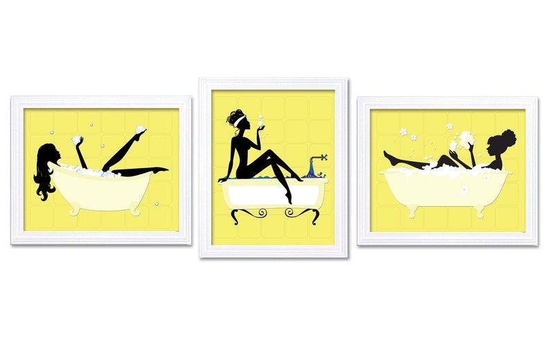 Yellow Black White Bathroom Wall Decor Bathroom Print Wall Art Etsy