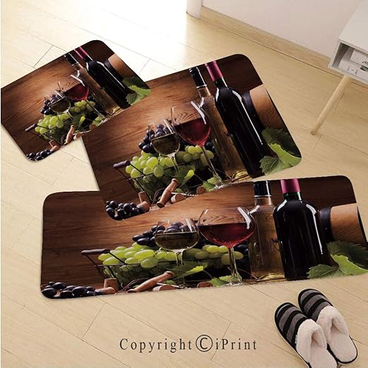 Amazon Com Wine 3d Non Slip Kitchen Mat Runner Rug Set 3pc