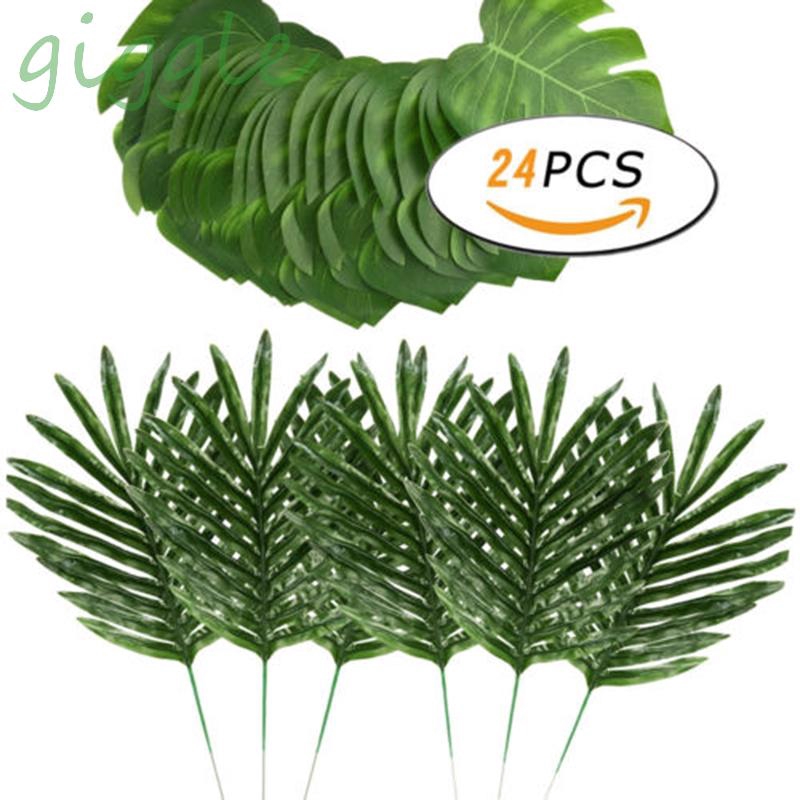 24pcs 2 Kinds Artificial Palm Tree Leaves Faux Fake Tropical