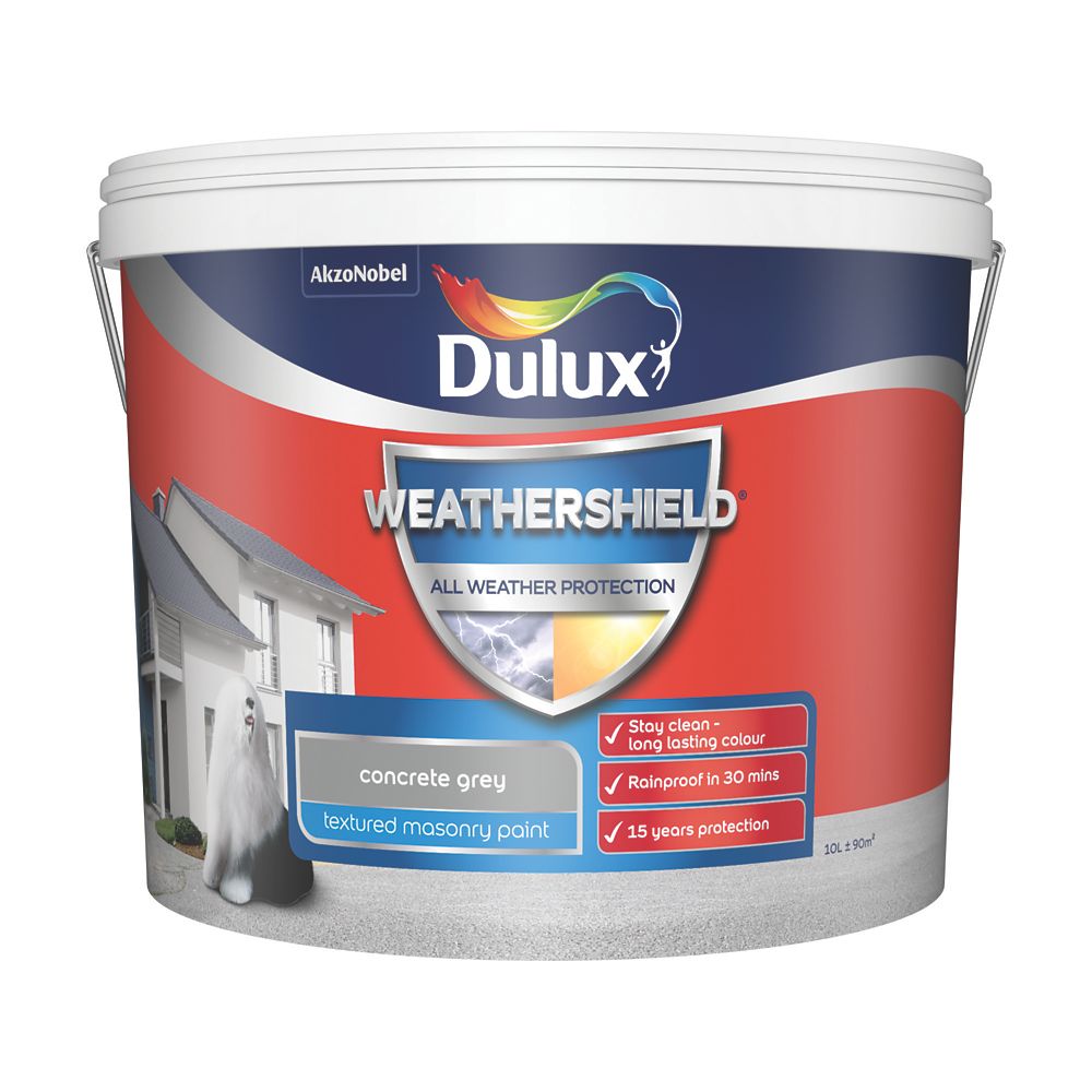 Dulux Weathershield Textured Masonry Paint Concrete Grey 10ltr