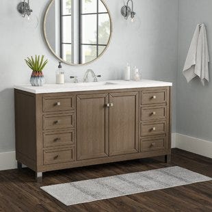 Valladares 60 Single White Washed Walnut Bathroom Vanity Set By
