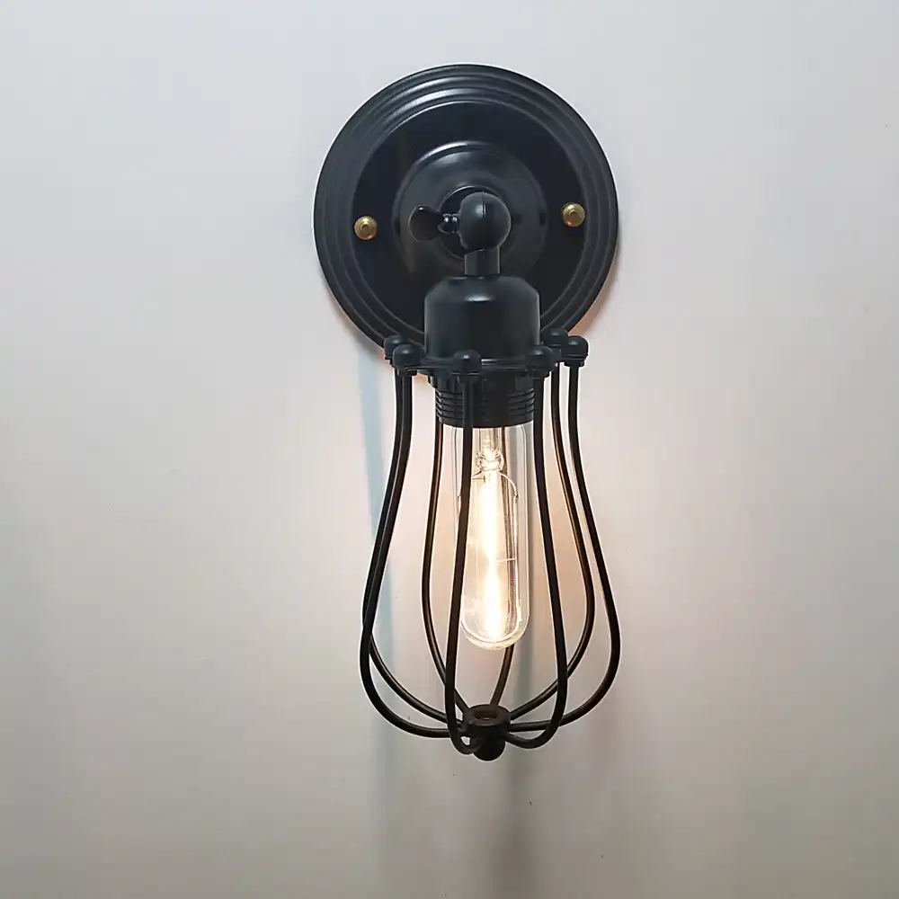 Wire Cage Wall Black Metal Industrial Wall Light Vintage Style