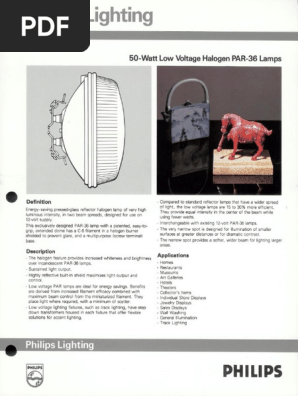Philips 50 Watt Low Volt Halogen Par 36 Lamps Bulletin 8 89