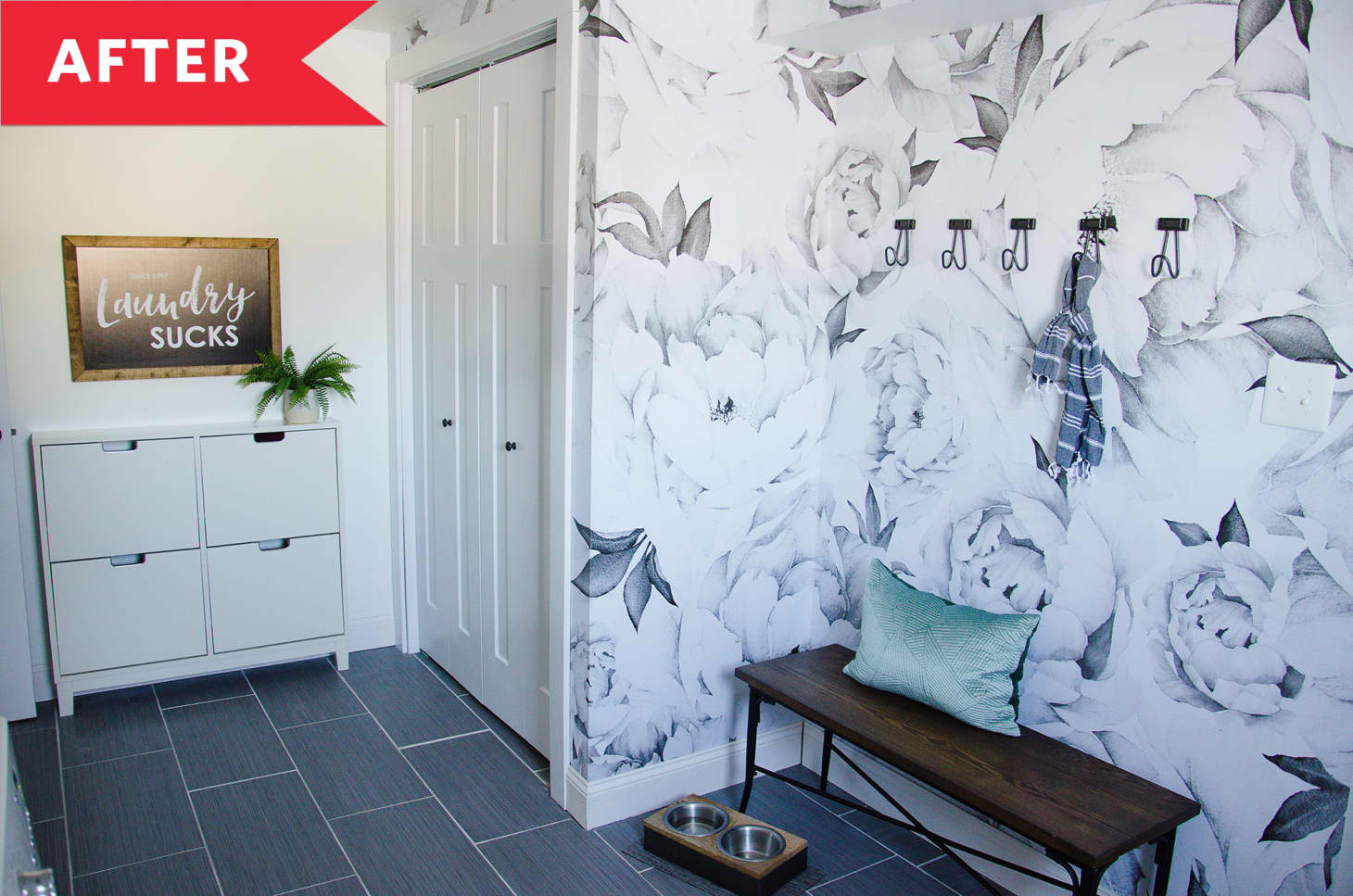 Before And After Floral Wallpapered Laundry Room Redo Apartment