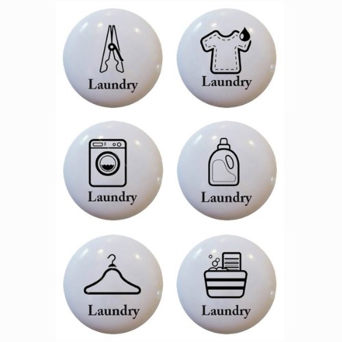 Set Of 6 Laundry Theme Ceramic Knobs Pull Kitchen Drawer Cabinet