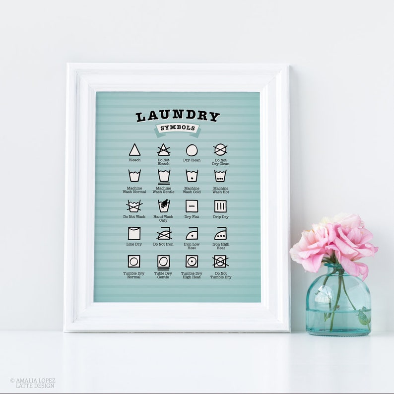Light Blue Laundry Symbols Print Laundry Room Wall Art Etsy